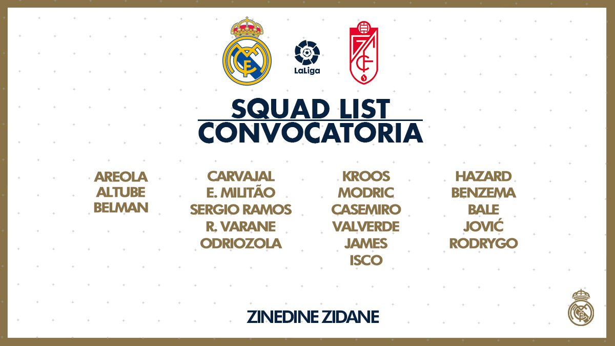 Lucas Vazquez dan Vinicius Junior yang sama-sama tampil pada laga di Eropa, kali ini tidak disertakan dalam tim, dengan James Rodriguez, Gareth Bale dan Rodrygo Goes kembali ke tim.