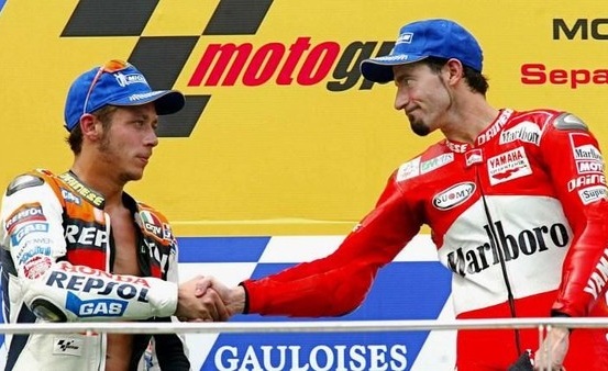 Di posisi ketiga ada Valentino Rossi vs Max Biaggi. Ini adalah rivalitas besar pertama Rossi di MotoGP. Ketegangan personal mereka memuncak pada 2001 bahkan hingga berujung hampir beradu fisik sebelum podium, menjadikannya salah satu konflik paling berisik di awal era ajang balap kelas premier ini.